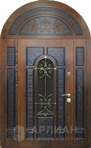 Арочная металлическая дверь с коваными элементами №1