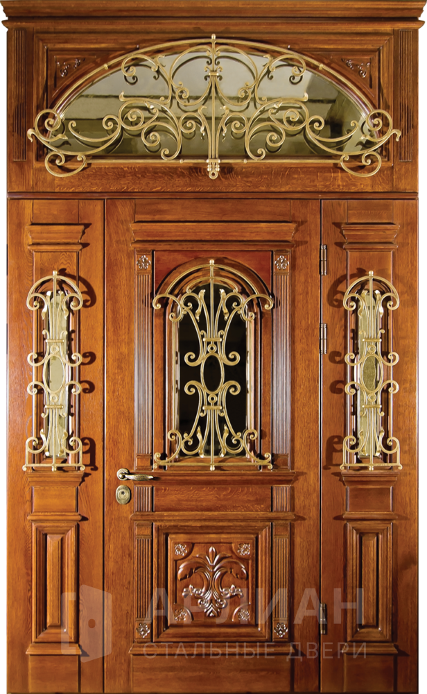 Металлическая входная дверь в коттедж с верхней фрамугой №10