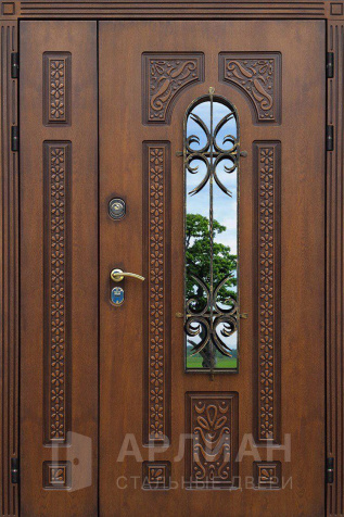Арочная металлическая дверь с коваными элементами №1